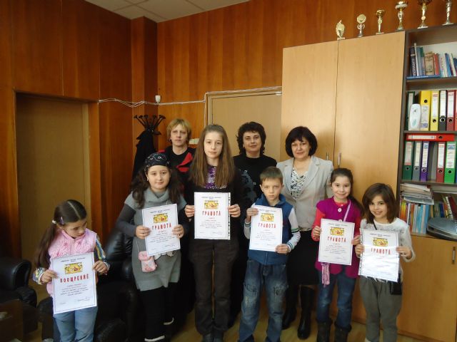 6-тима възпитаници на СОУ"П.Яворов" са отличени в конкурса на ОбДК Ямбол за изработка на мартенички и пролетни рисунки. Пламен Седларски и Даниела Маринова заеха челните първо и второ място за представените мартенички.Елина Антонова и Силвия Йорданова оглавиха класирането за пролетна рисунка.Награда за трето място получи Станимира Николаева, а малката Даниела Седларска се радва на поощрителна награда. Директорът Валентина Маринова поздрави децата и техните класни ръководители Танева, Вълканова, Атанасов, Парушева, Григорова с пожелание тези награди да бъдат само началото на още редица такива, за да се гордее училището със своите малки таланти. |