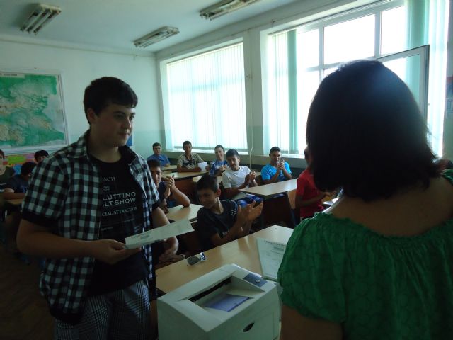 Успешно завършилите втория етап на образованието осмокласници от СОУ"П.Яворов" Стралджа получиха своите свидетелства лично от директора Валентина Маринова. От общо 34 ученици в началото на етапа 29 завършват без проблеми, 5 остават на поправителни изпити. Пълните отличници са 4-ма и те няма да имат никакъв проблем при избора на средно училище. "СОУ"П.Яворов" Стралджа може да се определи като училище с прекрасни условия и квалифицирани учители. Ще се радваме ако продължите да учите при нас!", покани завършващите осми клас г-жа Маринова като добави пожелание за приятно и незабравимо лято, но с мисъл за бъдещето. |