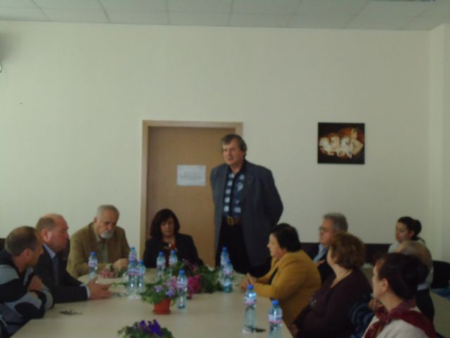 Интересен и незабравим ще остане за ученици и учители от СОУ"П.Яворов" урокът по родолюбие с гостите -творци водени от кмета на общината Митко Андонов: акад.Георги Марков, проф.Стоян Райчевски, Иван Гранитски и Любомир Котев. Началото сложи малката Симона Георгиева, която със своята презентация за трагичната съдба на прадядо си-бежанец трогна и впечатли присъстващите. "Това е един филм подготвен с умения, зареден с много емоция и Симона дава ясни доказателства, че може да се развива в това направление", подчерта Иван Гранитски с уверението, че материалът ще бъде публикуван в сп."Везни". За присъстващите на срещата беше любопитно да научат, че Симона Георгиева на 8 ноември заедно с преподавателката по информационни технологии Боряна Георгиева ще защитават първото място в Националния конкурс"Времето е в нас и ние сме във времето". Срещата продължи с интересен разговор за историята и по-конкретно героизма на българите в балканските войни, за съдбата на бежанците, за културното наследство на страната и др. /Галерия/ |
