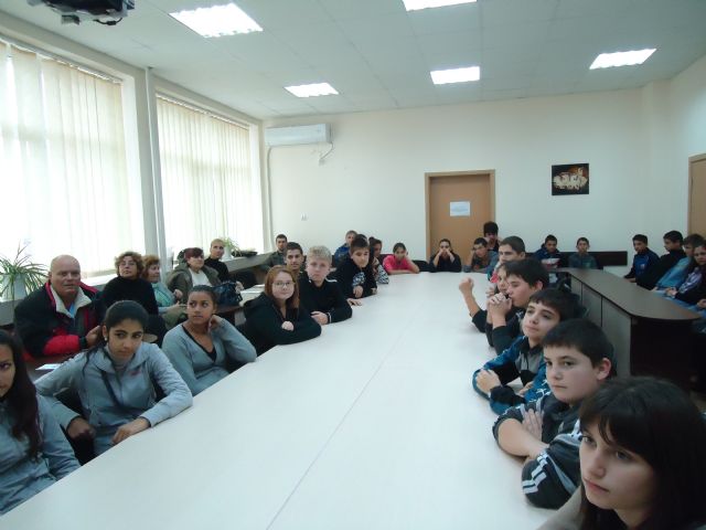 В изпълнение на НП"На училище без отсъствия", мярка "Без отсъствие" в СОУ"П.Яворов" се проведе ученическа конференция на тема "Пороците на днешното време". Гости на събитието бяха д-р Георги Атанасов и Йордан Йорданов, нач. на РУ"Полиция". Приветствайки организаторите на конференцията и гостите директорът Валентина Маринова изрази увереността си, че в СОУ"П.Яворов" ще продължават с най-различни методи и средства да водят борба срещу пороците на времето. Децата обърнаха внимание на вредността от цигарите, алкохола и наркотиците, разказаха как може младия човек да се поддаде на тези пороци, какви поражения могат да настъпят в организма, отправиха призива за повече спорт като отпор срещу вредните съблазни.Присъстващите изслушаха внимателно и с интерес д-р Атанасов и г-н Йорданов които достъпно и с примери от живота се включиха в обсъждане на темата./Галерия/ |